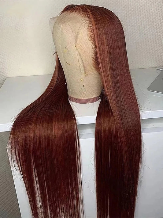 30 Inch Reddish Brown Lace Front Wigs Human Hair 13x6 Straight Lace Front Wigs Pre Plucked With Baby Hair 200% Density