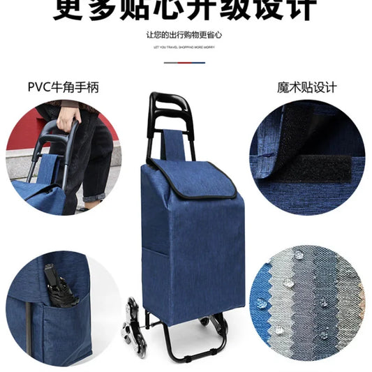 Shopping for Groceries Small Cart Hand-pulled Cart Climbing Stairs To Pull Goods Shopping Folding Grocery Cart